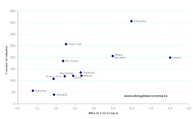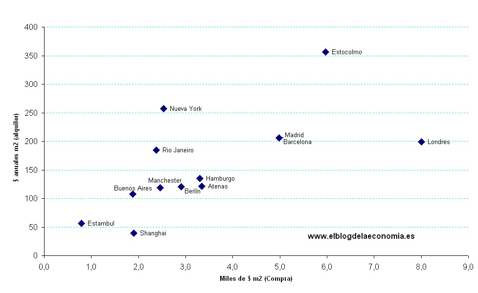 Comparativa internacional de precios de alquiler y compra