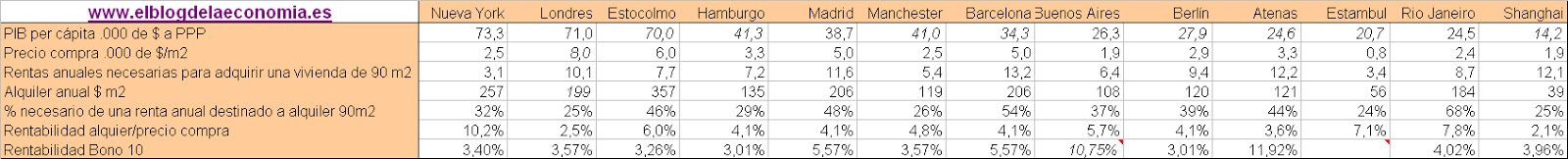 -Los precios de compra en Nueva York han caído rápidamente y dan rentabilidades por alquiler elevadas. El precio de compra en Nueva York, la ciudad con más renta de las estudiadas, ocupa el 7º lugar de las 13 ciudades de muestra.